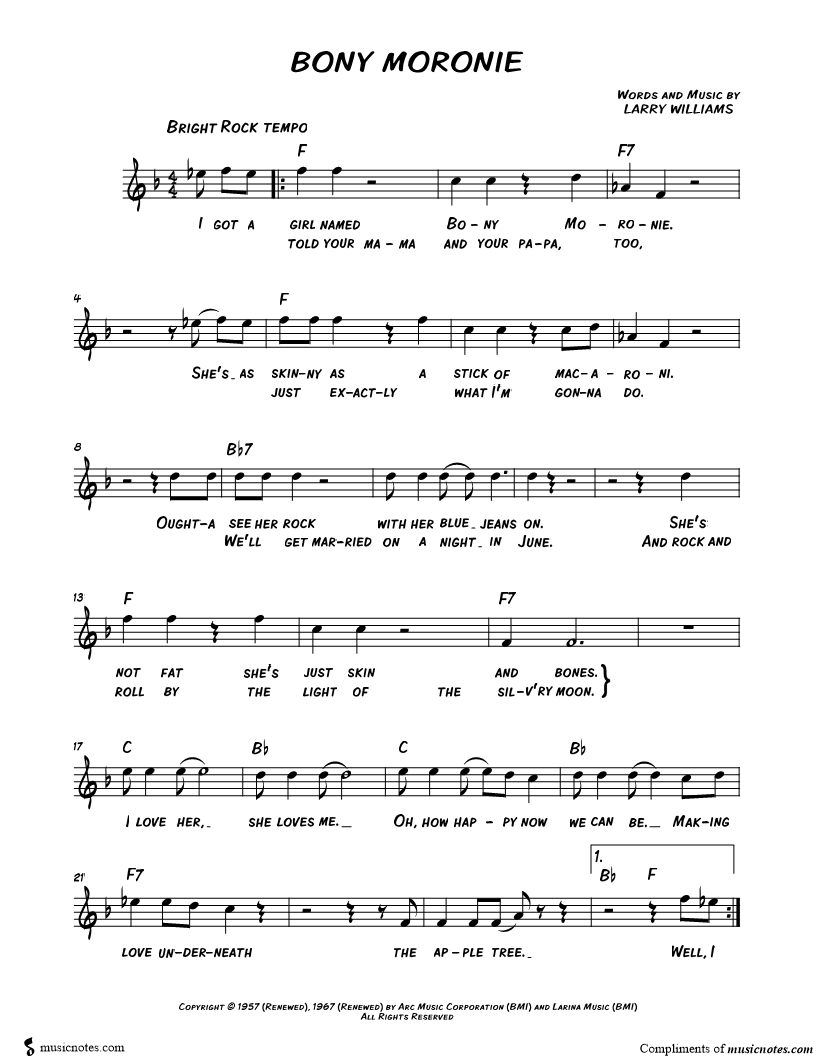 I got a girl named Bony Moronie. |