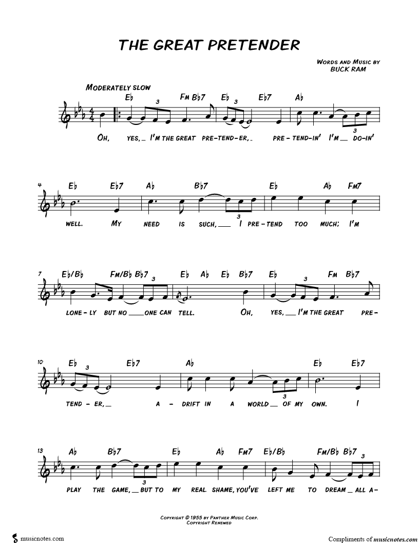 Oh, yes, I'm the great pretender, pretendin' I'm doin' well. |