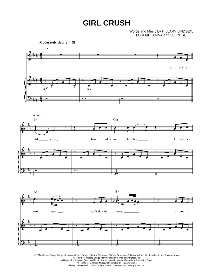 I got a girl crush, hate to admit it but I got a heart rush, ain't slowin' down. |