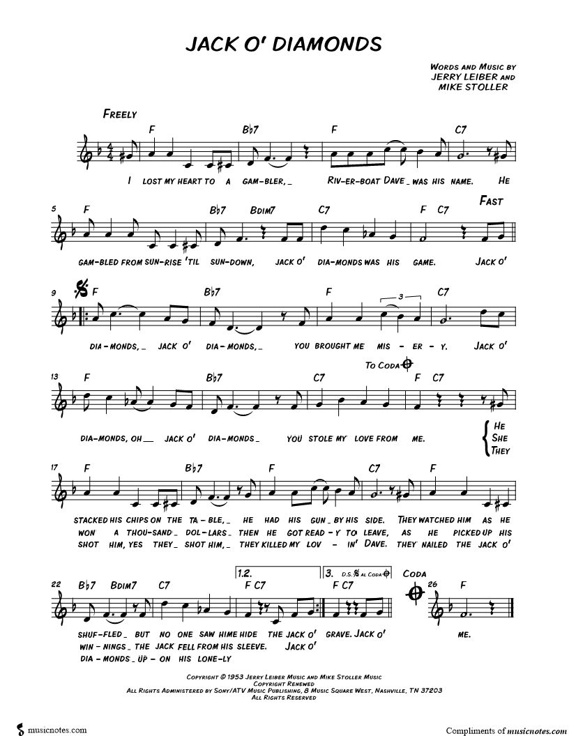 Leadsheets typically only contain the lyrics, chord symbols and melody line of a song and are rarely more than one page in length. Musicians will often use these skeletons to improvise their own arrangements. Leadsheets often do not contain complete lyrics to the song.
