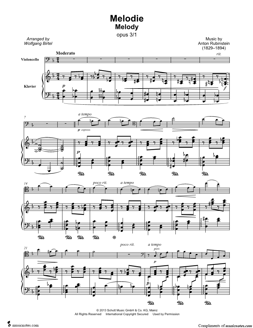 2 Mélodies, Op. 3: I. Moderato assai - Cello & Piano |