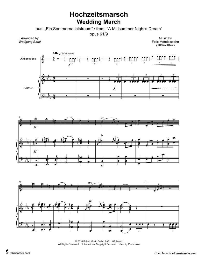 Wedding March from a Midsummer Night's Dream, Op. 61, No. 9 - Alto Saxophone & Piano |