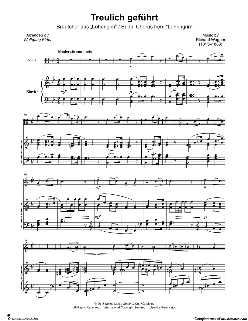 Bridal Chorus from Lohengrin - Viola & Piano |