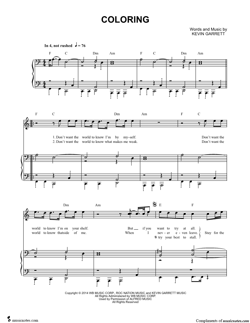 Musicnotes sells a wide variety of digital sheet music products including Singer Pros, Beginner Notes, Choral music, Piano Solos, Lead Sheets, Piano/Vocal/Guitar, Solo and Accompaniment, and fretted instrument tablature.