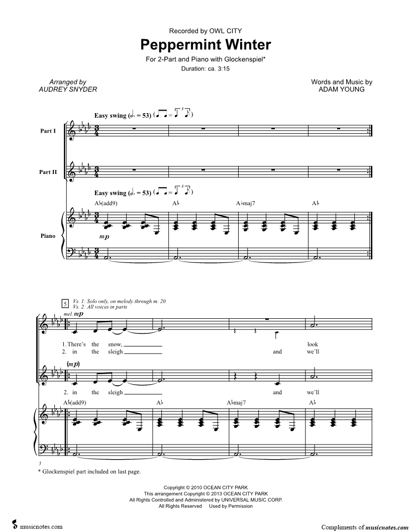 2-Part Choir Piano Accompaniment Glockenspiel, range: C4-Bb5 | |