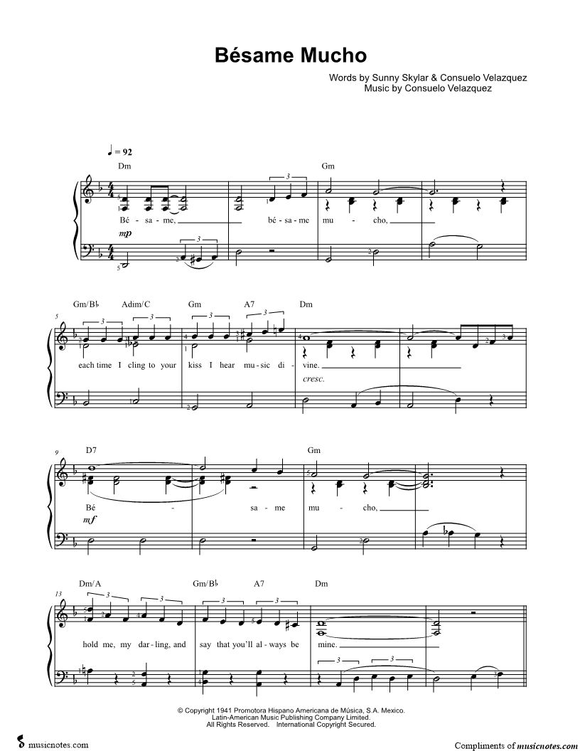 Besame, besame mucho, each time I cling to your kiss I hear music divine. |