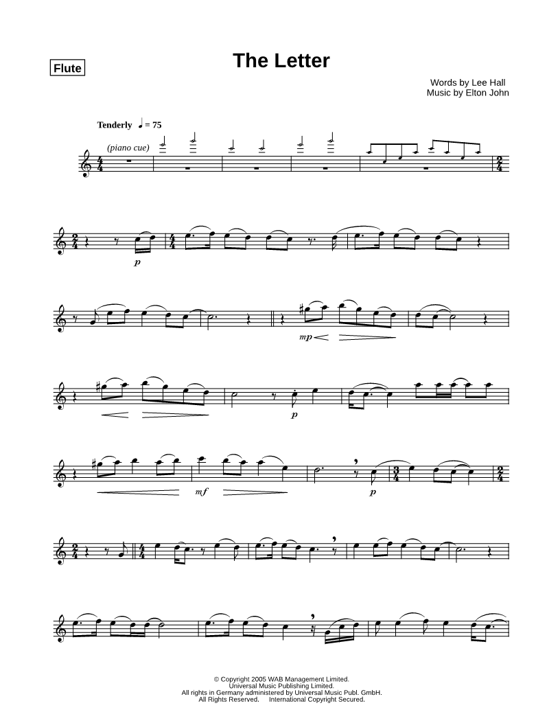 Flute, range: E4-D6 | |