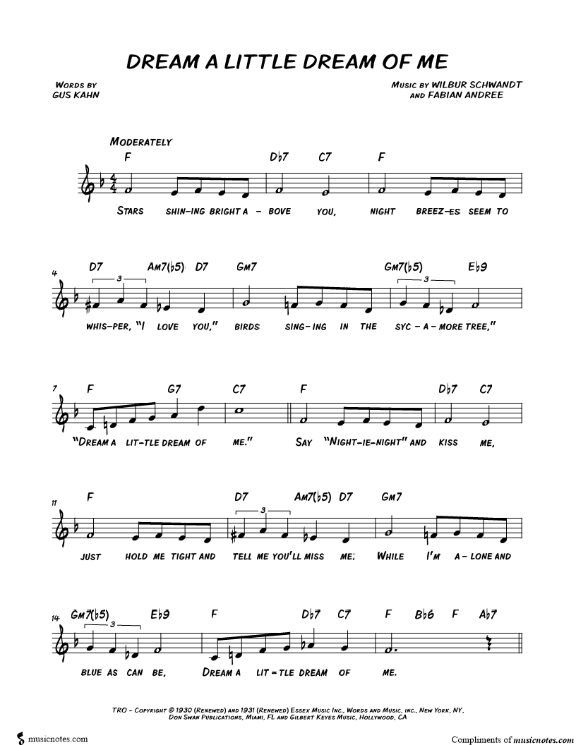 Stars shining bright above you, night breezes seem to whisper, "I love you," birds singing in the sycamore tree," "Dream a little dream of me." |