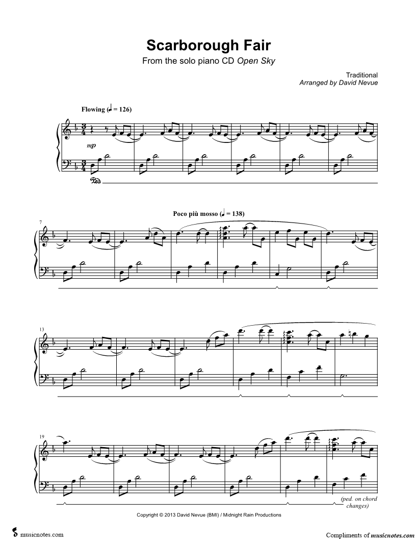 "David Nevue did a great arrangment of this song."