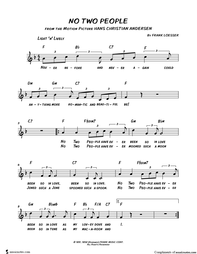 Leadsheets typically only contain the lyrics, chord symbols and melody line of a song and are rarely more than one page in length. Musicians will often use these skeletons to improvise their own arrangements. Leadsheets often do not contain complete lyrics to the song.