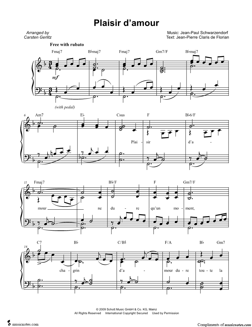 Plaisir d'amour ne dure qu'un mo, chagrin d'amour dure toute la vie. |