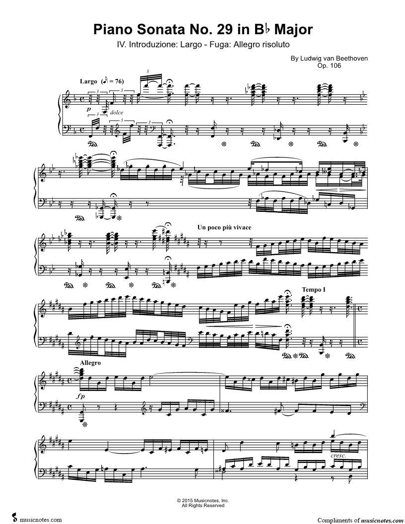 Piano Sonata No. 29 in Bb Major, Op. 106 ("Hammerklavier"): IV. Introduzione: Largo - Fuga: Allegro risoluto |