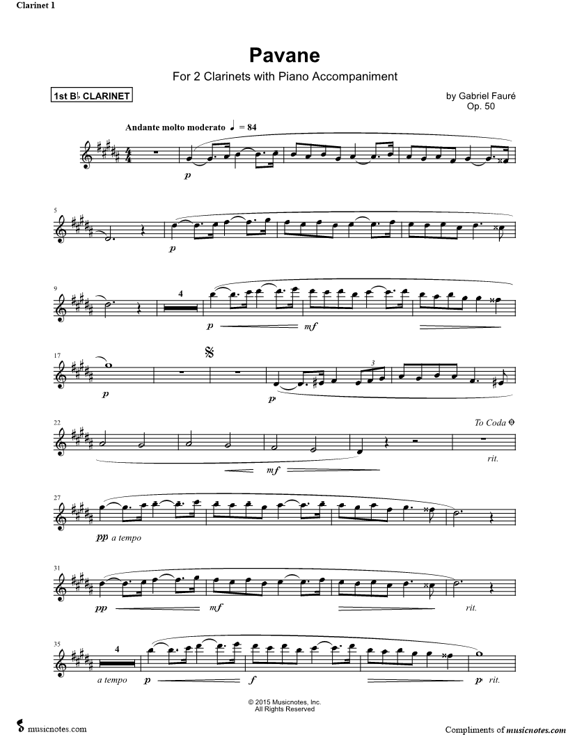 Pavane in F# Minor, Op. 50 - Bb Clarinet 1 |
