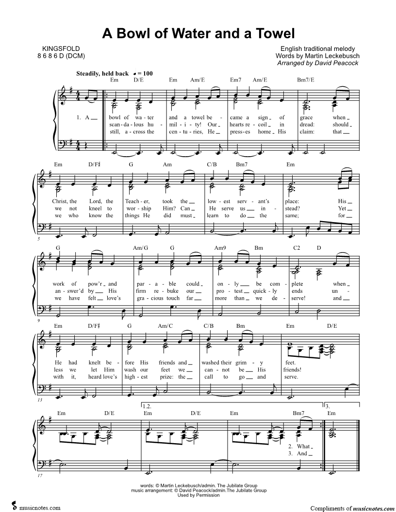 A bowl of water and a towel became a sign of grace when Christ, the Lord, the Teacher, took the lowest servant's place |