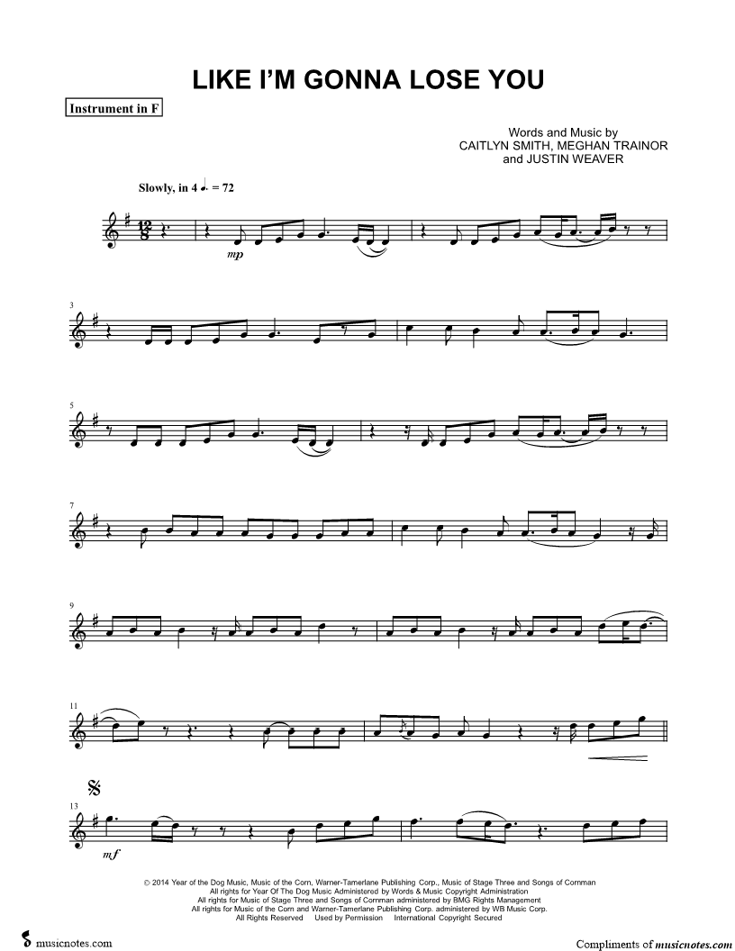 Like I'm Gonna Lose You - F Instrument |