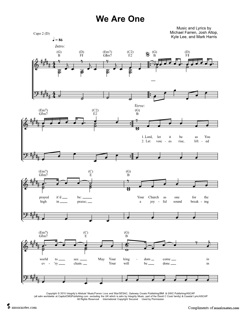 Many of the arrangements on Musicnotes have transpositions available, typically in C Major, as well as 3 sharps and 3 flats. If you do not see your desired key, you can request a transposition by reaching out to Customer Support.
