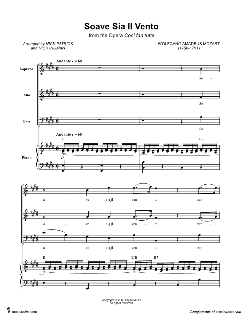 Soave sia il vento tranquilla sia l'onda, ed ogni elemento benigno risponda ai nostri desir. |