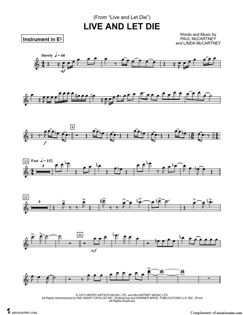 Live and Let Die - Eb Instrument |