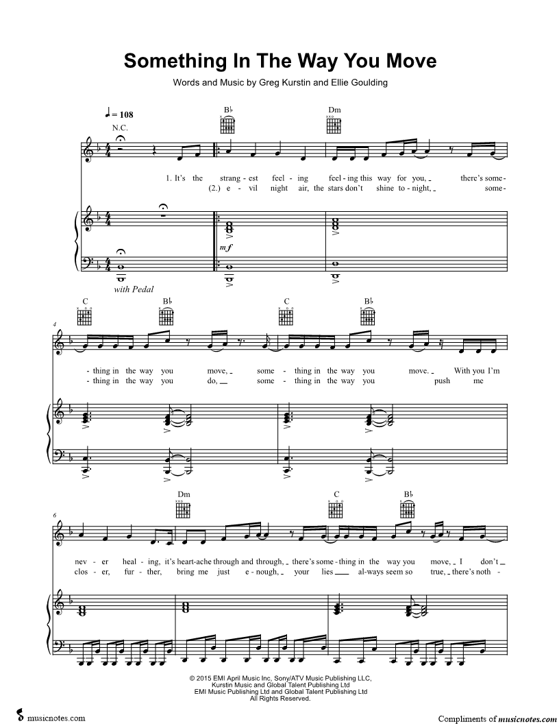 It's the strangest feeling feeling this way for you, there's something in the way you move, something in the way you move. |