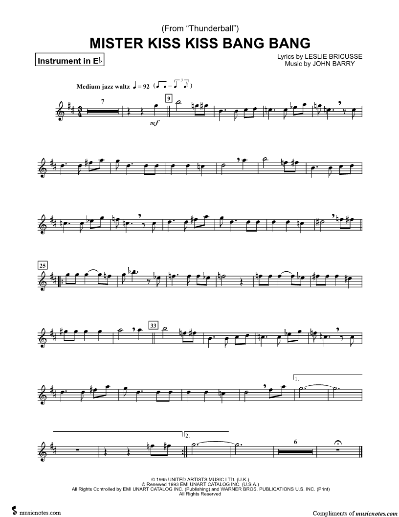 Mister Kiss Kiss Bang Bang - Eb Instrument & Piano (From "Thunderball")
