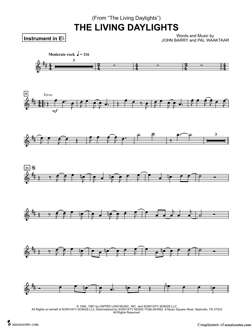 The Living Daylights - Eb Instrument & Piano (From "The Living Daylights")