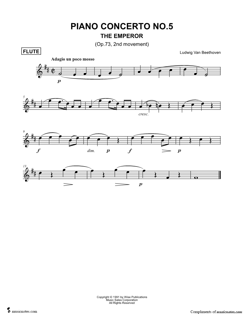 Piano Concerto No. 5 in E-flat Major ("Emperor"), Op. 73, II. Adagio un poco mosso [Main Theme] |