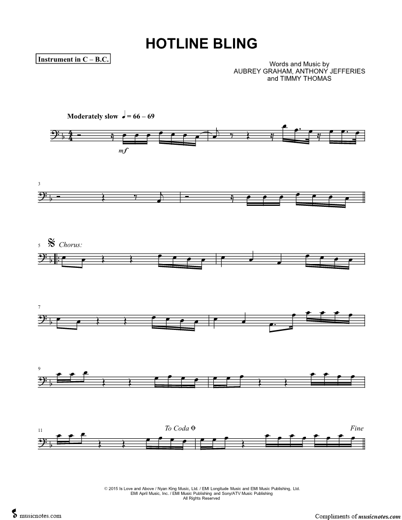 Hotline Bling - Bass Clef Instrument |