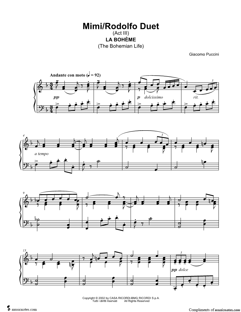 La bohème: Act III - Mimi / Rodolfo Duet |