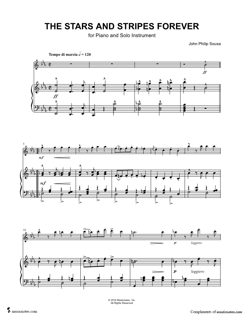 The Stars and Stripes Forever [Complete] - C Instrument (High) & Piano
