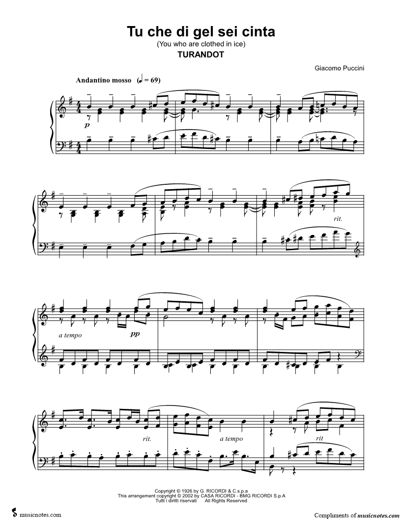 Turandot: Act III - "Tu che di gel sei cinta" |
