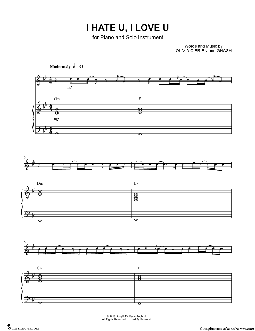 I Hate U, I Love U - Bass Clef Instrument & Piano