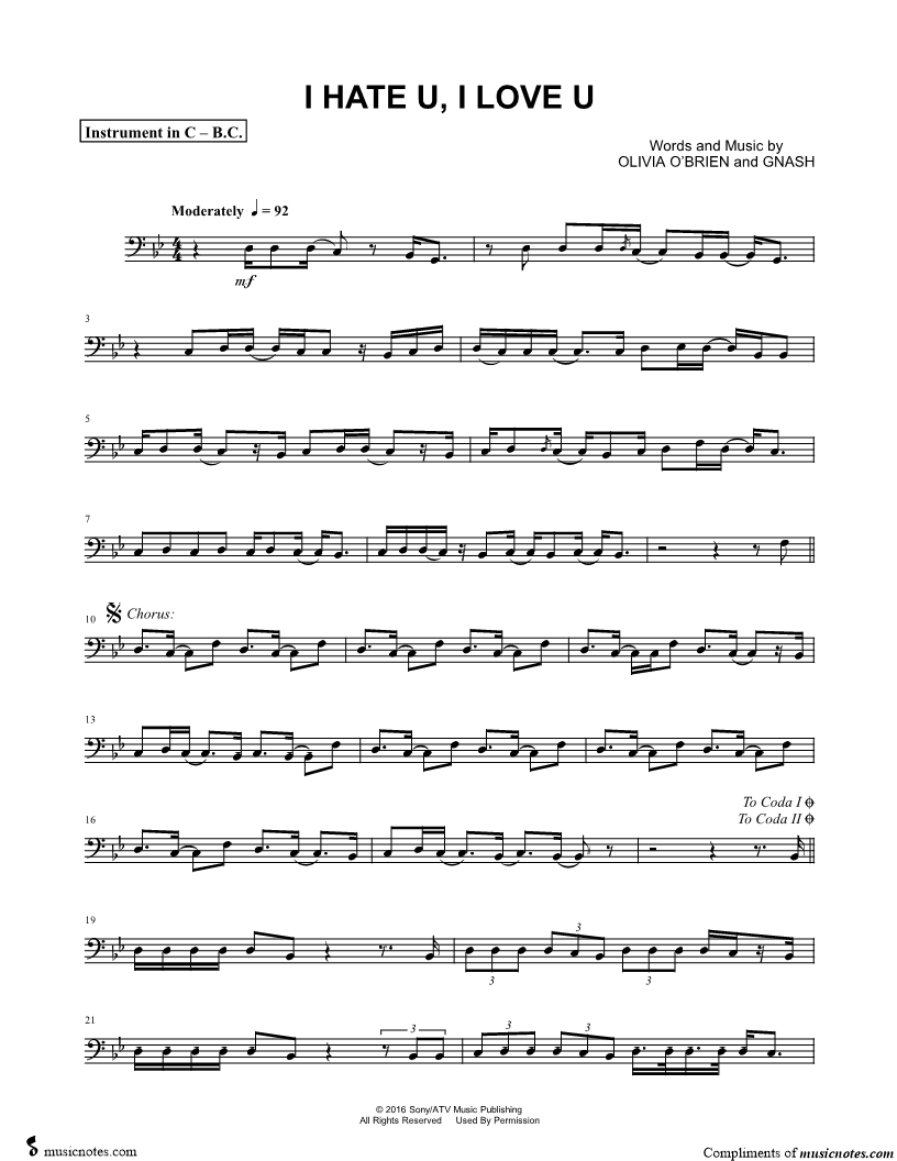 i hate u, i love u - Bass Clef Instrument |