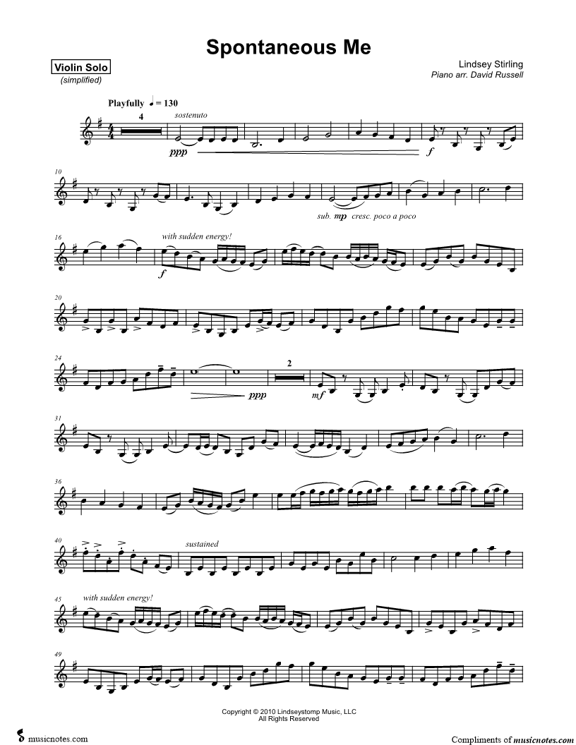 Spontaneous Me - Violin Part [Simplified] |