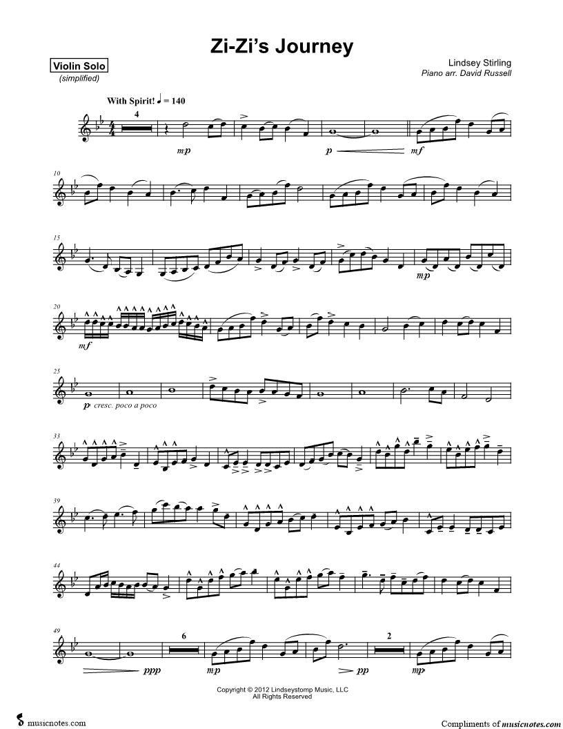Zi-Zi's Journey - Violin Part [Simplified] |