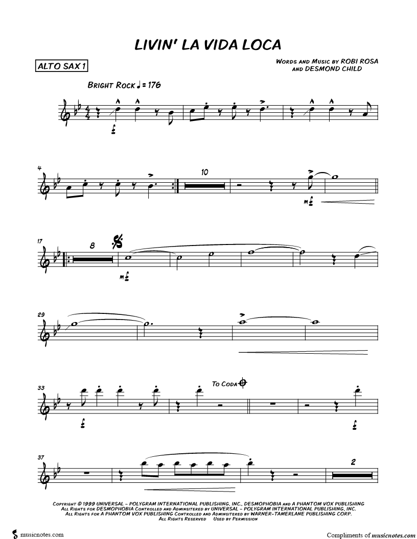 Livin' la Vida Loca - Alto Saxophone 1 |