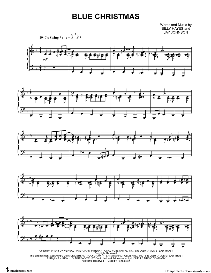 "Blue Christmas is a favorite. Downloaded three arrangements to compare."