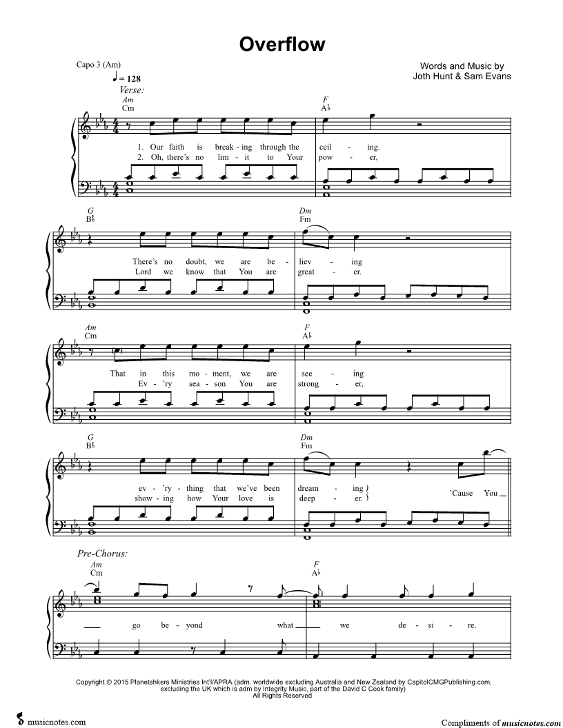 Many of the arrangements on Musicnotes have transpositions available, typically in C Major, as well as 3 sharps and 3 flats. If you do not see your desired key, you can request a transposition by reaching out to Customer Support.