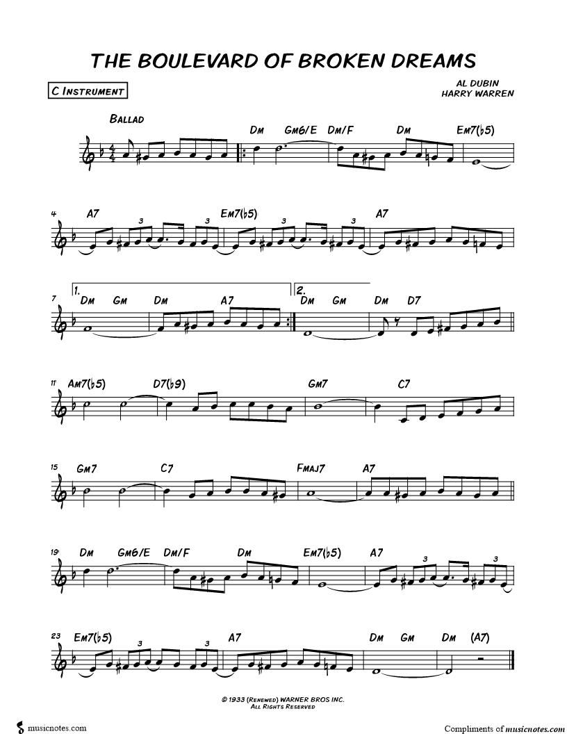 The Boulevard of Broken Dreams - C Instrument |