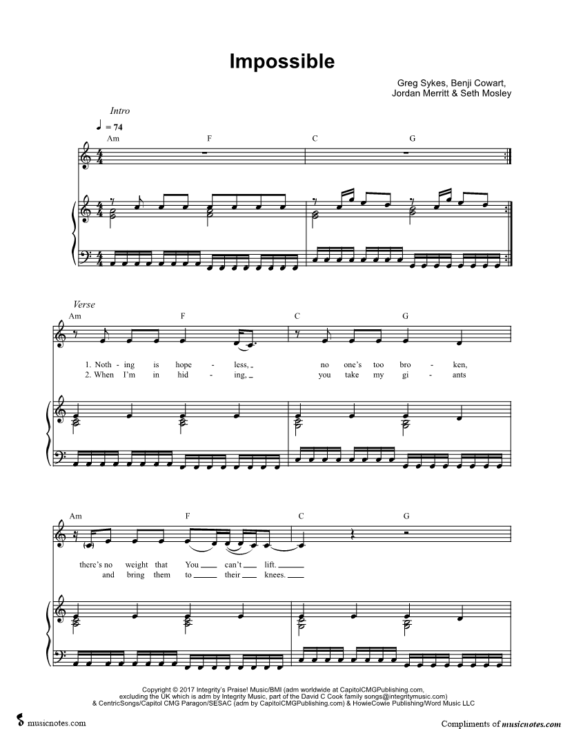 Many of the arrangements on Musicnotes have transpositions available, typically in C Major, as well as 3 sharps and 3 flats. If you do not see your desired key, you can request a transposition by reaching out to Customer Support.