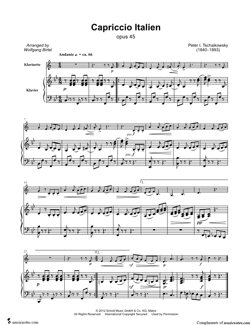 Capriccio Italien [Main Theme] - Clarinet & Piano |