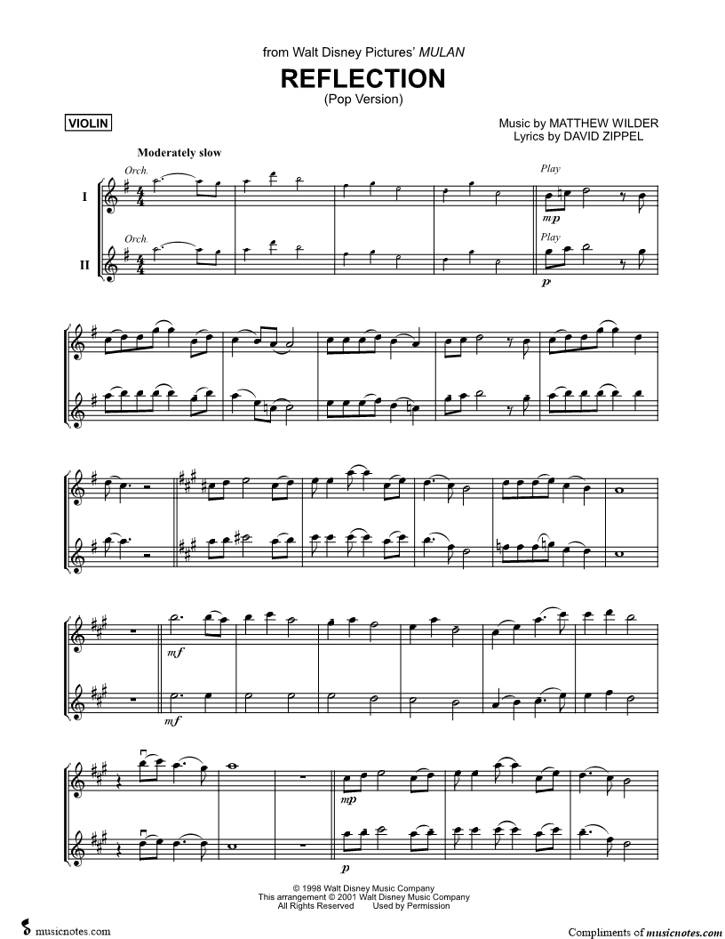 Violin 1, range: A4-D6 Violin 2, range: A4-C#6 | |