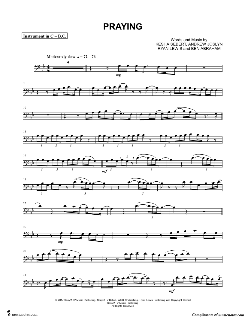 Praying - Bass Clef Instrument |