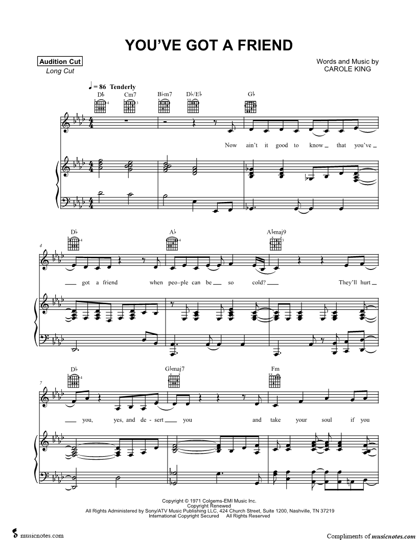 Now ain't it good to know that you've got a friend when people can be so cold? |