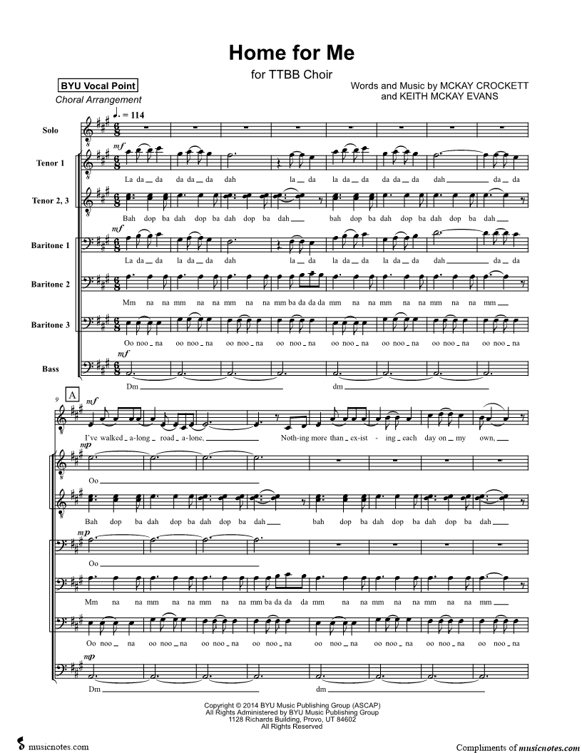 Tenor Voice, range: C#3-B4 TTBB Choir | |