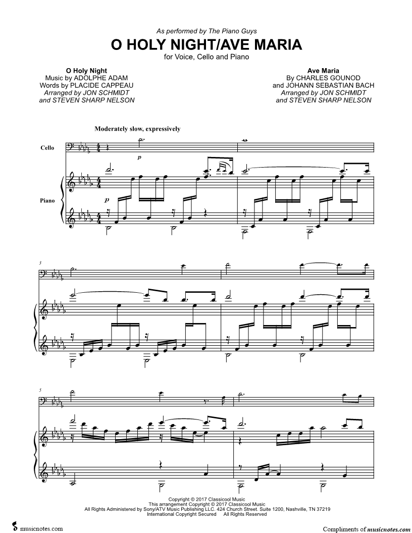 O Holy Night / Ave Maria - Piano, Vocal & Cello |