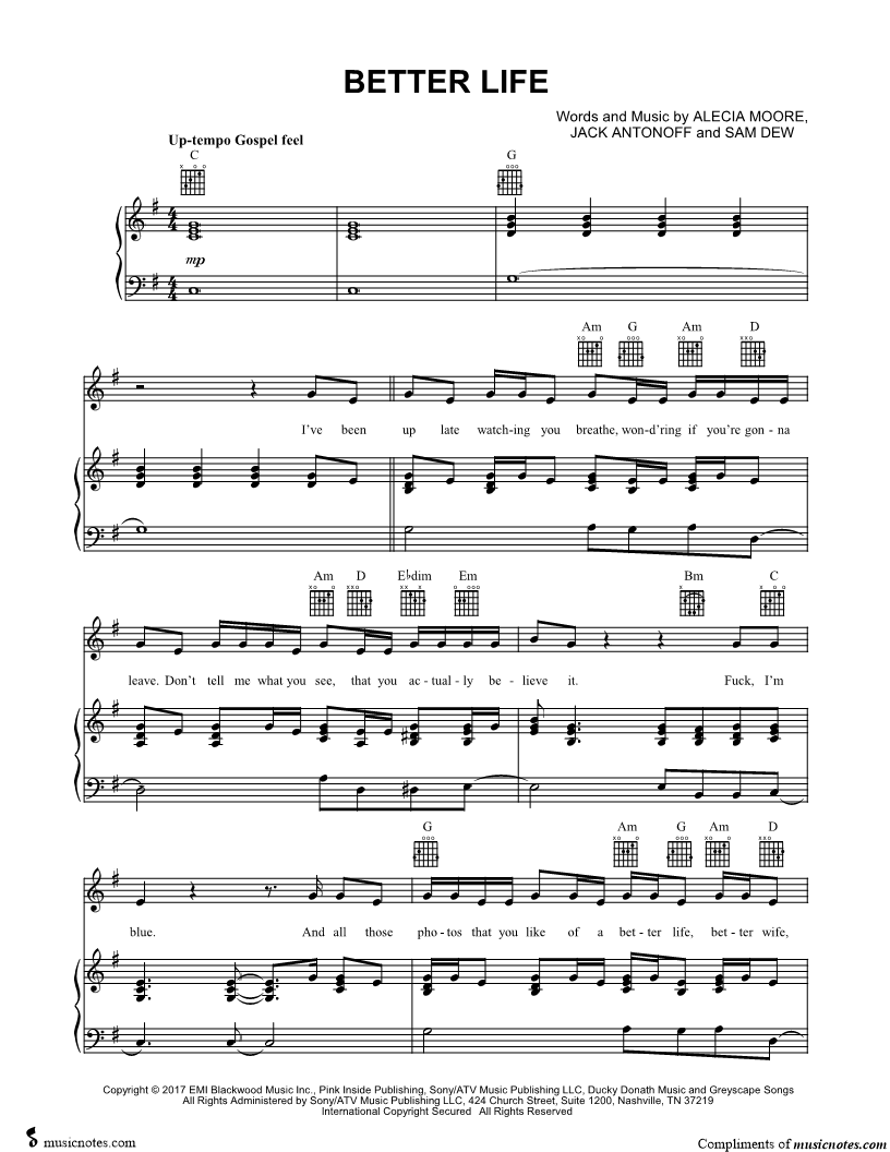 Musicnotes sells a wide variety of digital sheet music products including Singer Pros, Beginner Notes, Choral music, Piano Solos, Lead Sheets, Piano/Vocal/Guitar, Solo and Accompaniment, and fretted instrument tablature.
