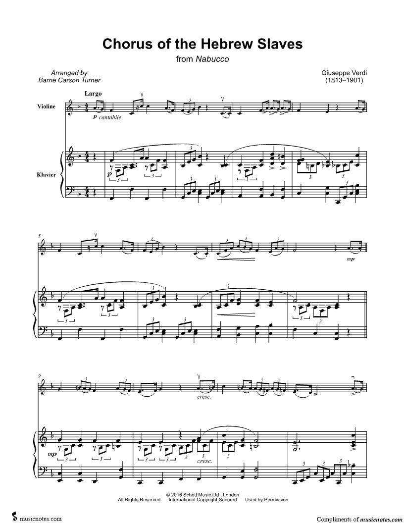 Chorus of the Hebrew Slaves (Va, pensiero) - Violin & Piano |