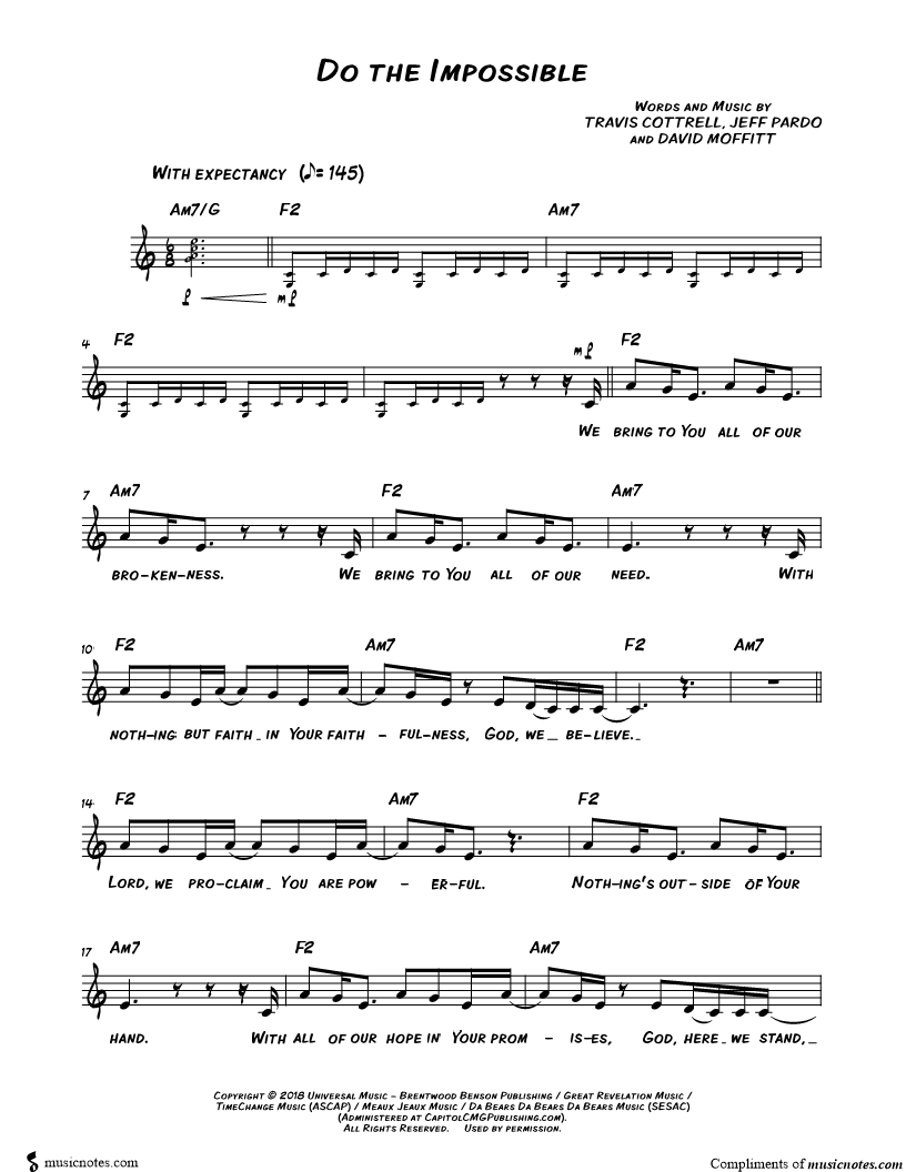 Many of the arrangements on Musicnotes have transpositions available, typically in C Major, as well as 3 sharps and 3 flats. If you do not see your desired key, you can request a transposition by reaching out to Customer Support.