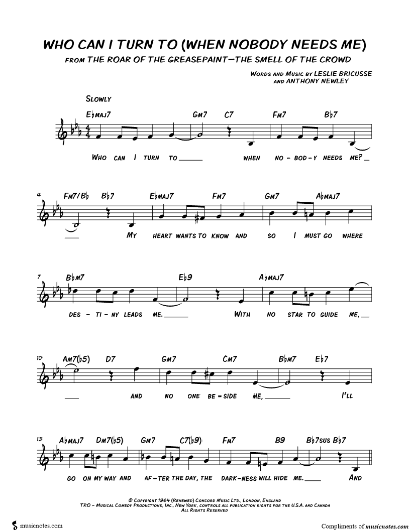 Who Can I Turn To (When Nobody Needs Me) |