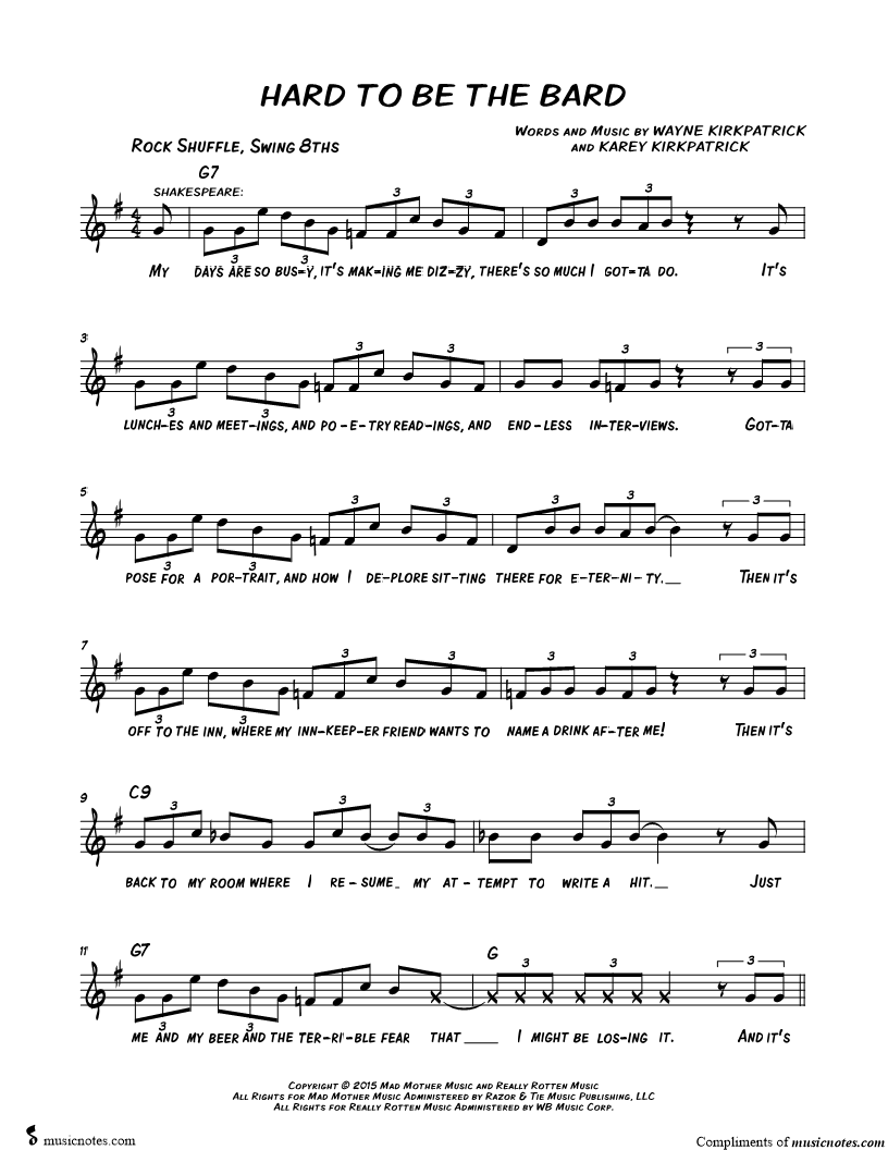 Leadsheets typically only contain the lyrics, chord symbols and melody line of a song and are rarely more than one page in length. Musicians will often use these skeletons to improvise their own arrangements. Leadsheets often do not contain complete lyrics to the song.
